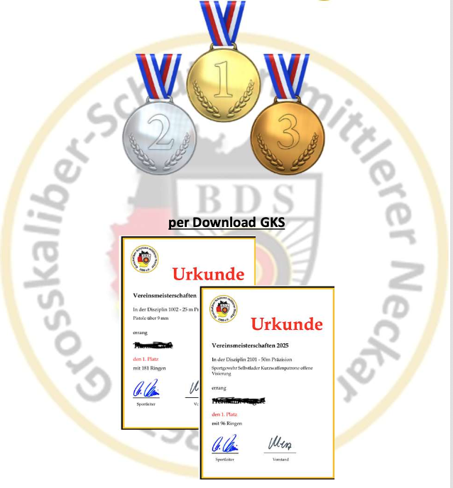 Die Standbelegung für die Trainingstermine und die Vereinsmeisterschaft erfolgt NICHT über unsere Homepage, sondern per Email an Markus Maimer m.maimer@gmx.de. Bei der Anmeldung bitte aufführen, wie viele Starts in der jeweiligen Kategorie (KK, GK, Flinte) pro Teilnehmer geschossen werden. z.B. Max Mustermann 2x KK, 3x GK, 2x Flinte. Allgemeine Hinweise und Sicherheitsbestimmungen: Es gelten die Bestimmungen des aktuellen BDS Sporthandbuchs. Außerdem gelten die Vorgaben der Verordnung zum Waffengesetz, insbesondere in Bezug auf die vom Schießsport ausgeschlossenen Waffen (§ 6 AWaffV). Bei kritischen Waffen hat der Schütze den Nachweis der Freigabe für Sportschützen selbst zu erbringen. |